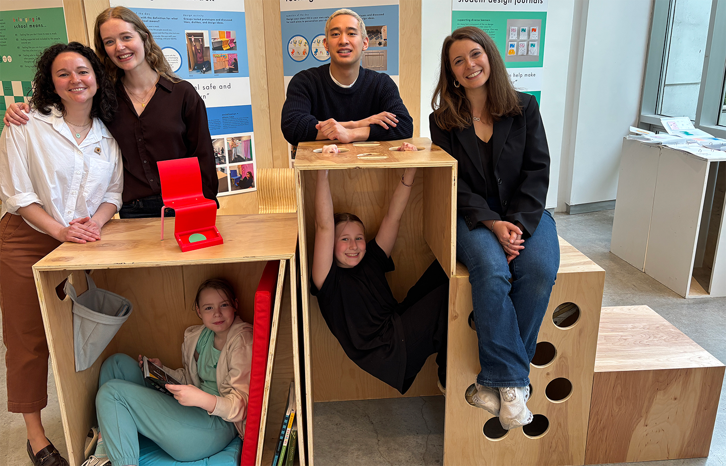 Our findings suggest that school spaces that foster belonging and engagement need to foster a spectrum of activities, provide students the freedom and flexibility to move between these activities, and allow students to feel “together but different.” After multiple rounds of feedback and iterative development with the students and adult stakeholders, the project resulted in three furniture-scale design solutions.