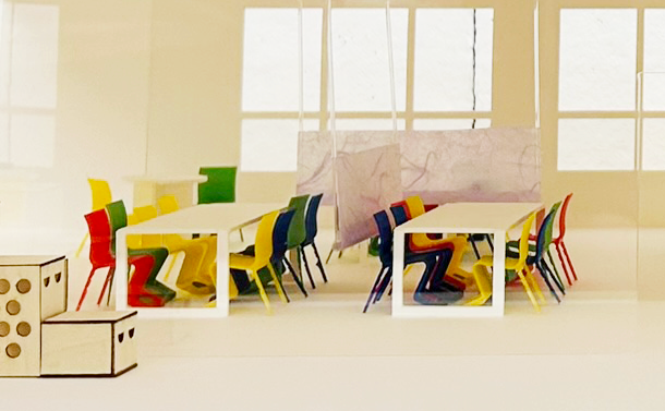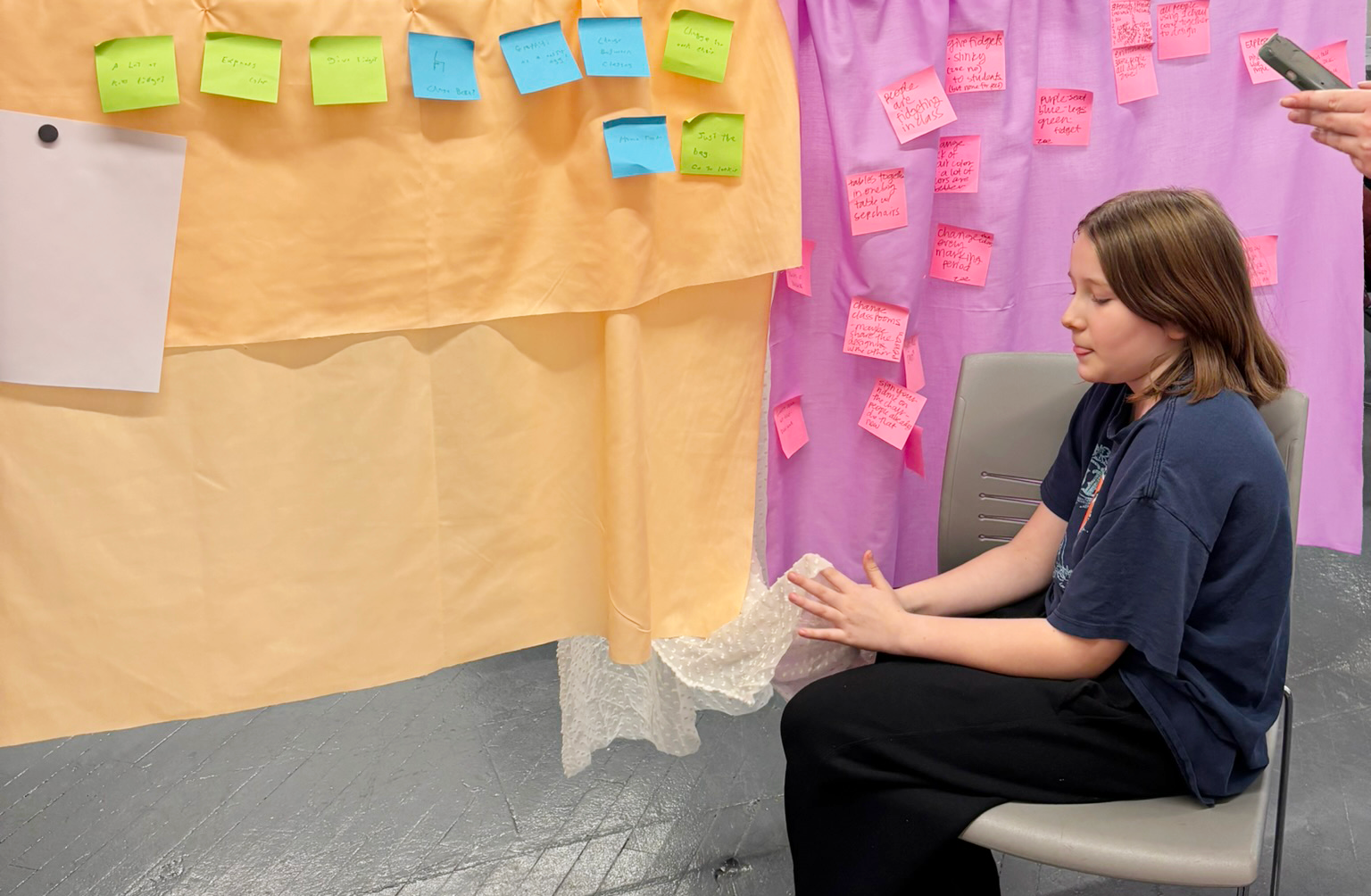The screens use texture and transparency to provide an option for a calming, smaller space within the larger classroom environment.